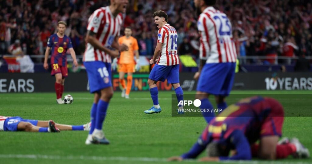Atletico Madrid sent 10-man Barcelona crashing out of the Champions League and reached the final four with a 3-2 aggregate victory despite Tuesday’s 2-1 quarter-final second leg defeat.