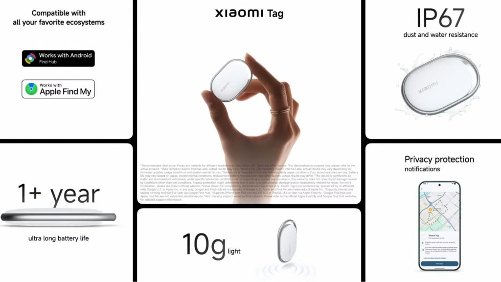 The Xiaomi Tag is a new Bluetooth tracker that works with both Apple’s Find My network and Google’s Find Hub network simultaneously. That dual-network support sets it apart from the AirTag and most other trackers on the market. It weighs just 10g and carries an IP67 water resistance rating.
