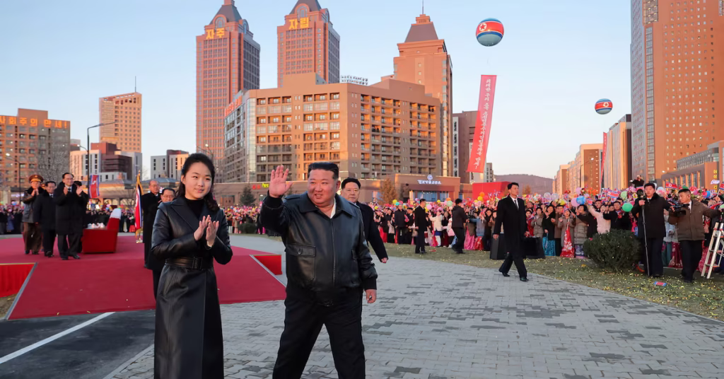 Kim’s daughter Ju Ae was shown at her father’s side at the completion ceremony, hugging and congratulating the residents of the new estate. There has been increasing speculation among analysts and from South Korea’s spy agency that Kim is grooming the teenager to succeed him.