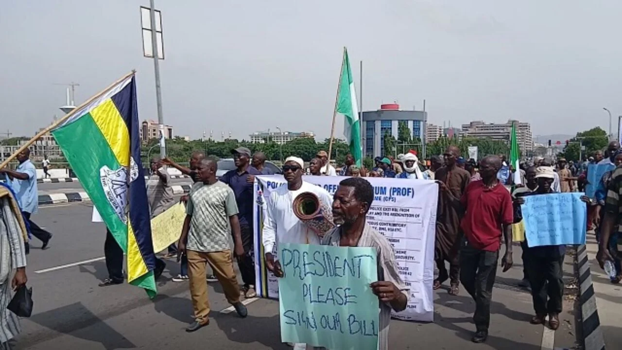 The protesters, under the umbrella of the Police Retired Officers Forum of Nigeria, described the scheme as unfair and called on Bola Ahmed Tinubu to sign the Police Exit Bill into law.